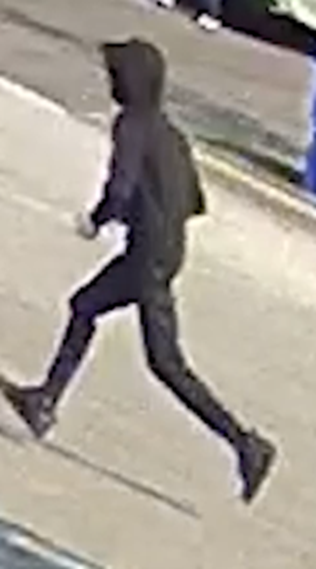 According to investigators, surveillance footage shows the suspect arriving in a grey Honda CR-V SUV. The suspect is described as a man with a slim build, wearing dark clothing and white gloves.