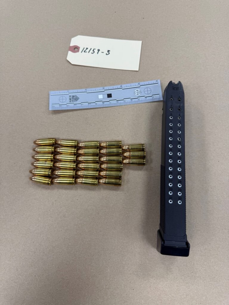 Investigators from 41 Division later tracked the suspect to Pickering, where he was arrested with assistance from the Durham Regional Police Service. Officers say two firearms were seized at the time of the arrest, including one equipped with an extended magazine containing 27 cartridges.