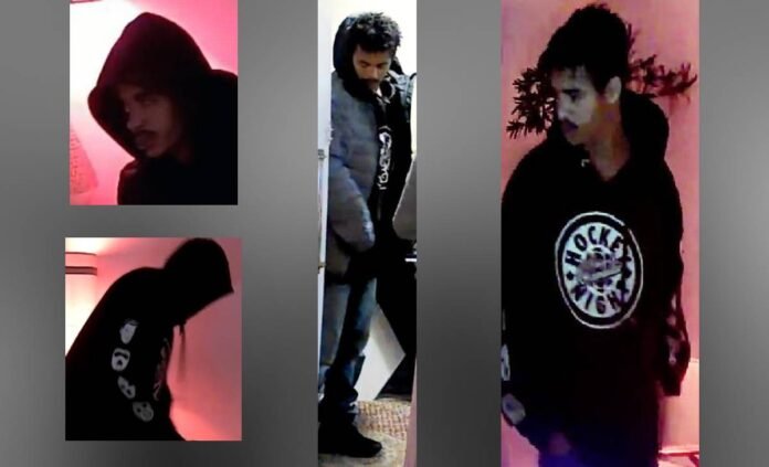 The suspect is described as a man between 5’8” and 6’2” tall, with a slim build and dark brown wavy hair. At the time of the incident, he was wearing a black hooded jacket with “Hockey Night in Canada” logo on the front.