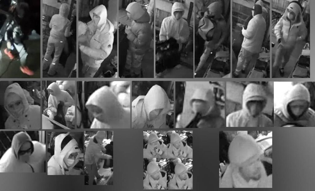 Suspect #4: Male, 20–30 years old, thin build, wearing a light winter jacket, sweatpants, and two-toned shoes with reflective tongues.